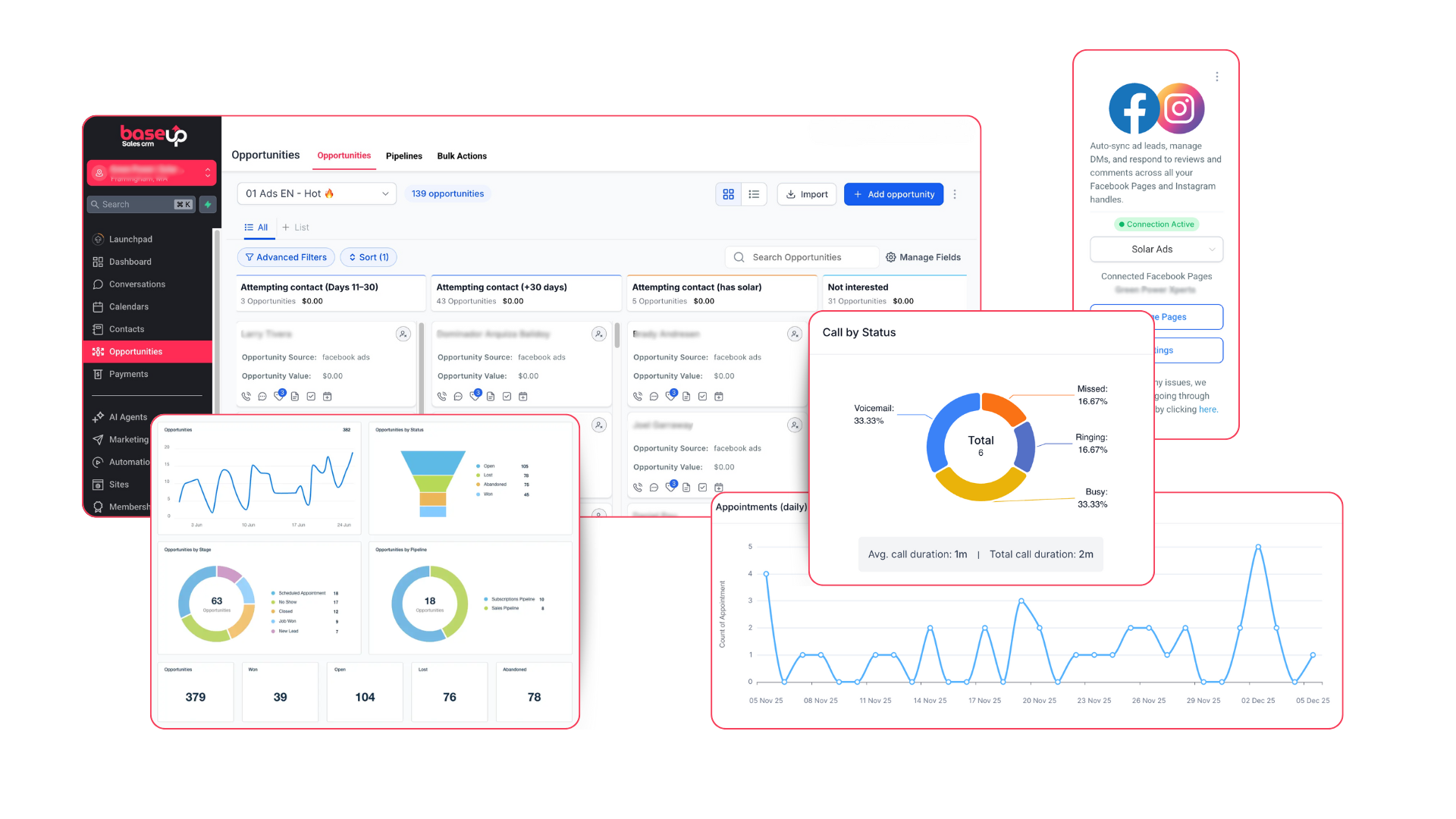 Our phone system allows you to make and receive calls directly inside the CRM, with automatic call recording, a power dialer to speed up outbound calls, intelligent call routing across your team, caller identification with lead details, and detailed performance reports with metrics such as handling time, conversion rate, and quality analysis.